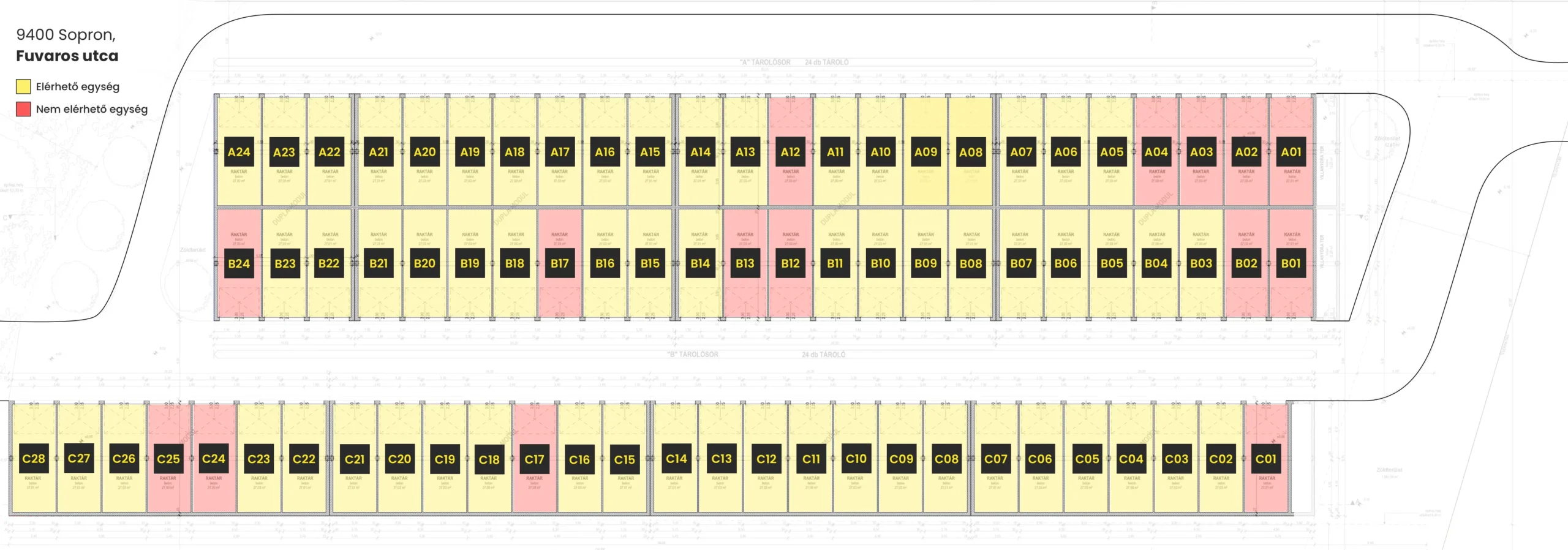 A tárolók Sopronban, a Fuvaros utcában találhatók. Az elhelyezkedésük könnyen megközelíthető, így ideális választás mind magánszemélyek, mind vállalkozások számára, akik praktikus és jól felszerelt tárolóhelyet keresnek.